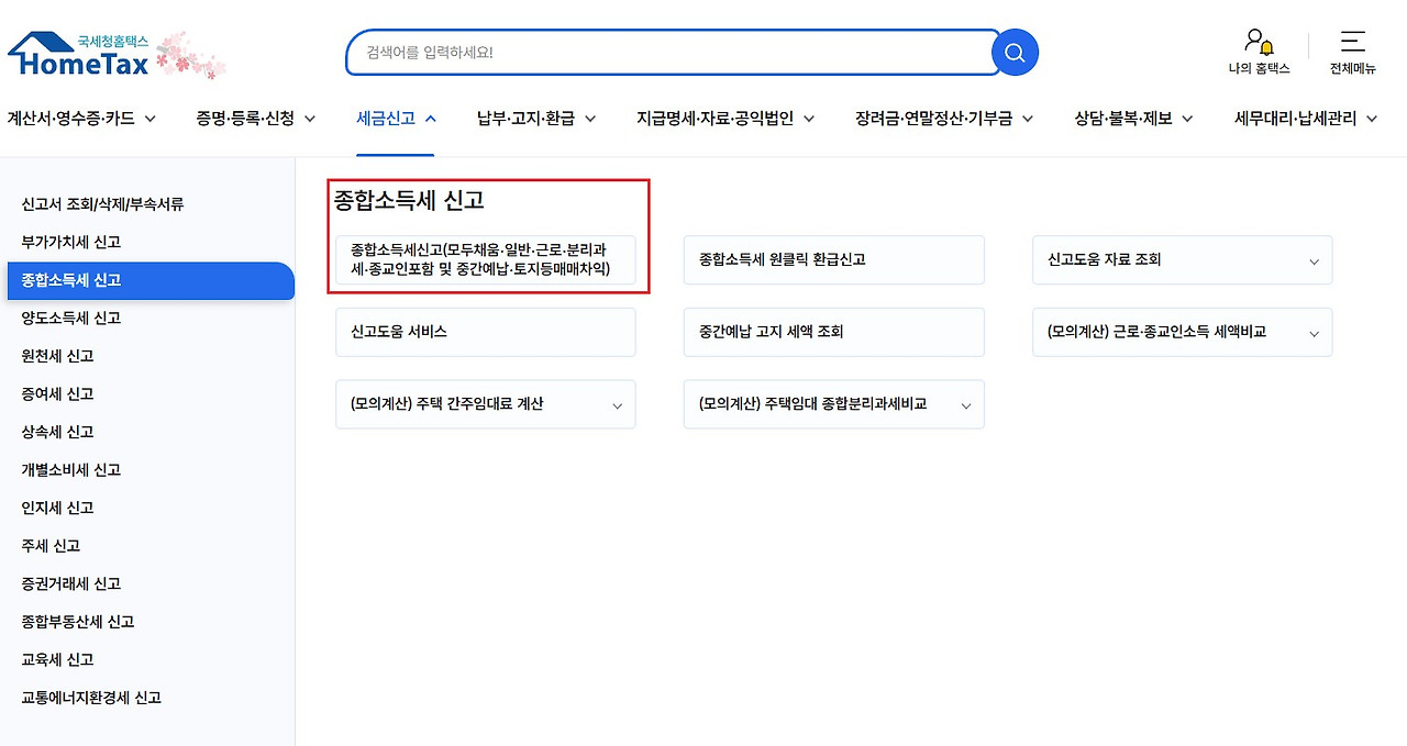 온라인 신청(홈택스 이용)